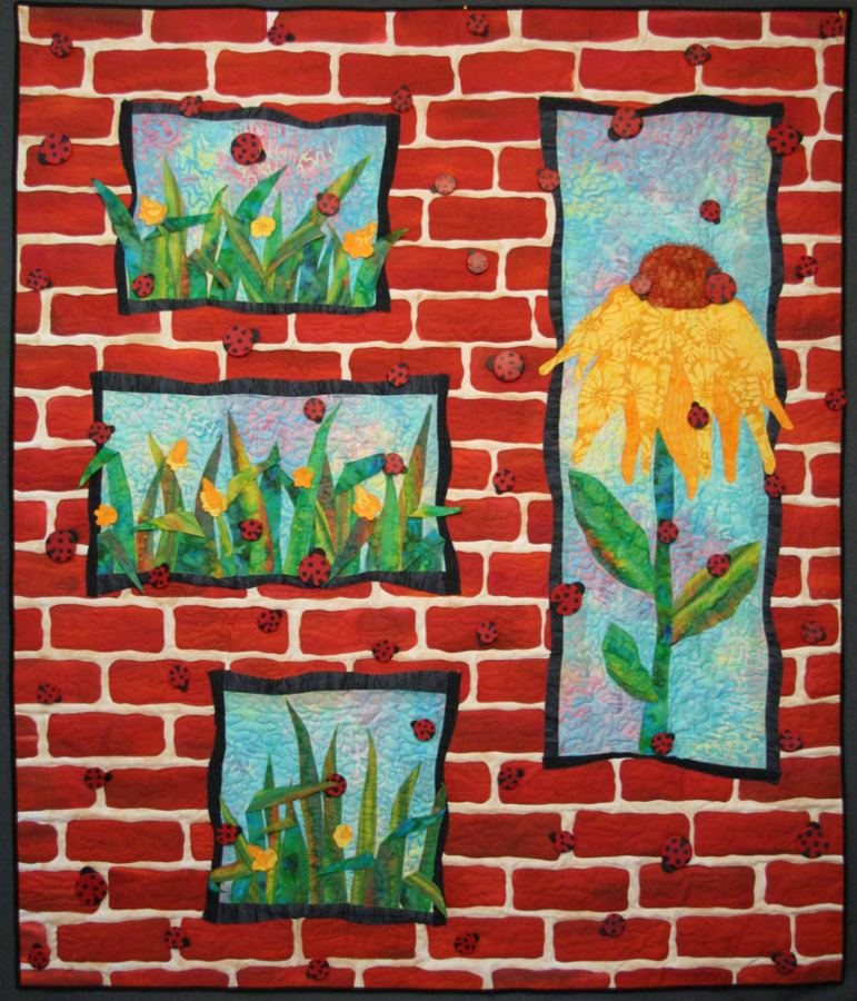 michelleV Ladybug day - ladybug day happens around my house once a year. sometime in september the whole front of this old brick farmhouse is covered in ladybugs. I had never seen anything like it before so when the challenge came along to do something for www.fabledfibers.com I couldnt resist using this idea. here is the poem I wrote to go with it Ladybug, ladybug where are you today, The days grow long and winter is on its way The leaves on the trees are beginning to fall, your journey is so long for one so small. May the wind bring you swiftly to this place where I wait the day that you come, for me, is so great You bring all your friends and you fill up the wall and I am so happy to sit and watch you all As you crawl and you search for your winter space I hope you will find a cozy little place In this old house to rest till spring when the flowers grow and the birds sing. The wind will call and you will go on your way I'll see you again next ladybug day!