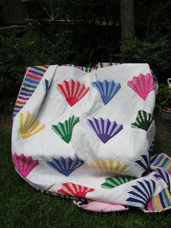 cozyquilter My Fancy Fans - Queen size quilt for my guest bed. Several modifications from the pattern in the book include: a straight edge instead of the scalloped edge in the pattern, more "open space" for quilting, and larger than pattern. Solid pink backing shows hand quilting off beautifully.