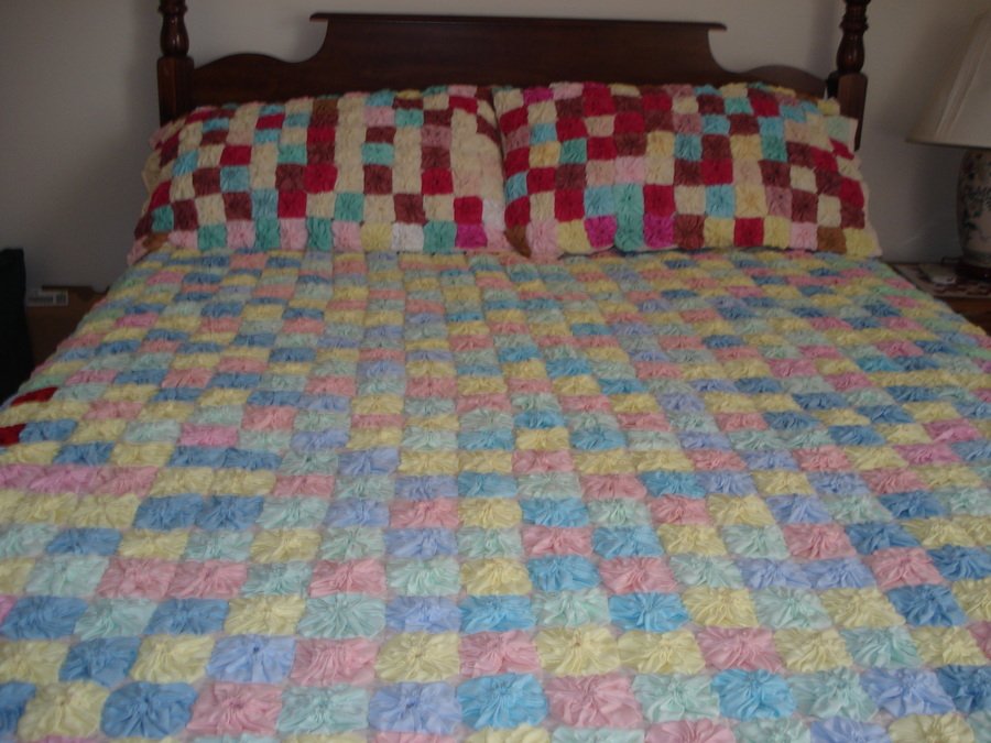 thecreativelady Yo Yos for Yolanda - This quilt was made by my childhood beautician completely by hand! I saw it and had to have it! I love it and will cherish it forever.