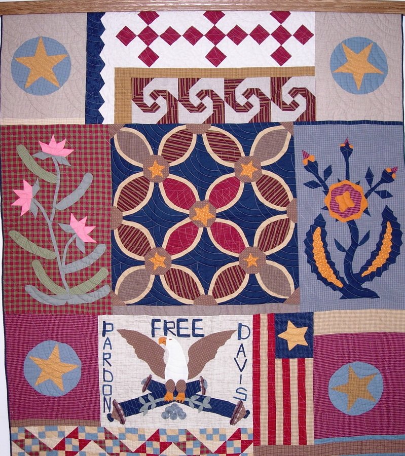 SistersChoicQltngSrv In memory of Harriet and Pardon - The eagle block was drawn from the Civil War Veterans monument in our town. The quilt commemorates not only Harriet Tubman, but Pardon Davis, an abolitionist who was imprisoned in Louisiana for helping escaped slaves. This was the second project of our Civil War Club here at my shop.