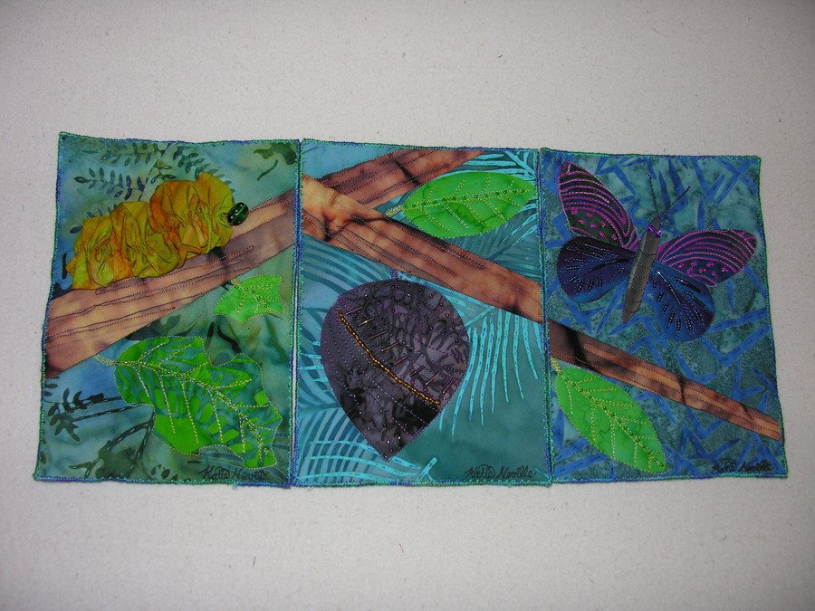 froggyquilter MicroCosmos II entry - As soon as I found out the theme for this years MicroCosmos (yesterday, today, and tomorrow), the idea of metamorphosis came to my mind. And that's just perfect for me because I just loooove butterflies :) I just found out that Peggy bought my quilt! I am so glad that she enjoys it every day.