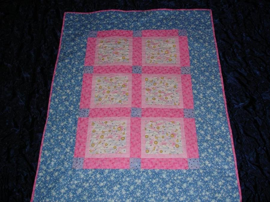 | Design Source - Description | My daughter helped me pick the theme for this baby quilt made for my neighbor. I quilted a TON of stars using a cookie cutter for a stencil. |