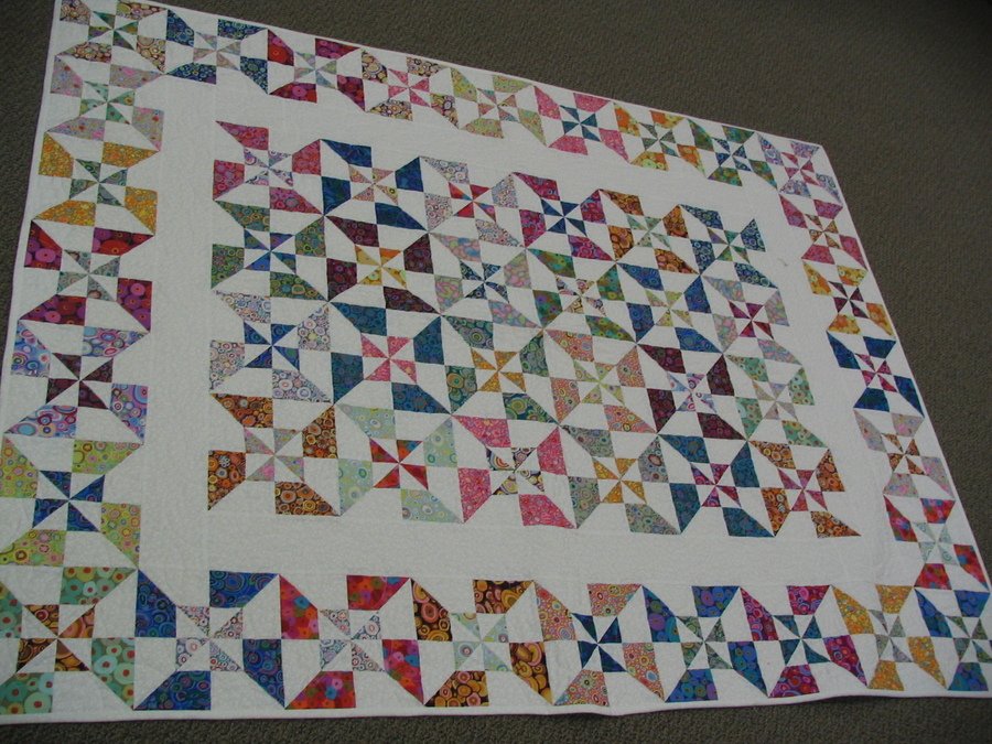 Jackiequilts Kaffe's Double Pinwheel - I made this quilt as a shop sample for Gone Quilting using Kaffe Fassett fabrics. This is my 3rd Double Pinwheel quilt. I love this pattern as it is easy to do and gives a great result.