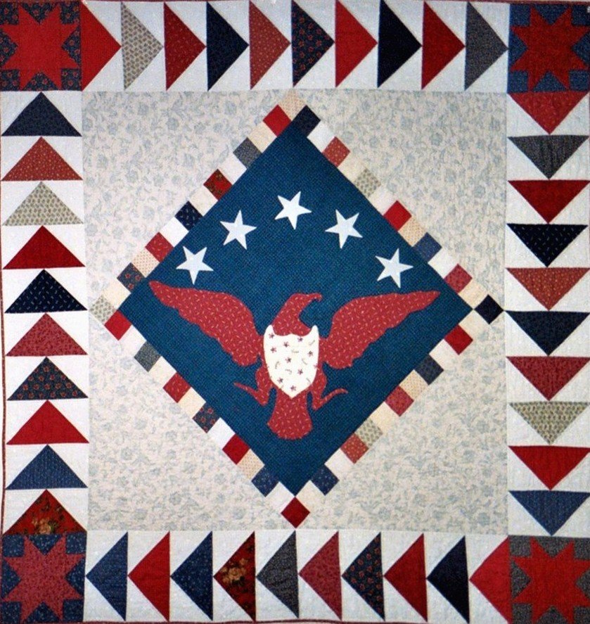 EiQuilt Day of Independence - I made this for a dear friend to celebrate her 90th birthday. She is extremely active in The Daughters of the American Revolution (DAR), among other patriotic organizations. When I saw Terry CLothier Thompson on Simply Quilts discussing quilts from DAR and the Daughters of Liberty, I knew the quilt that Ms. Thompson was making during the show would be the perfect gift for Beverly. Needless to say, she loves and cherishes the quilt.