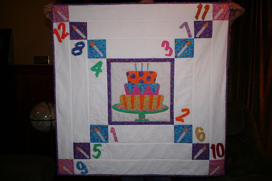 kklein Happy Birthday Quilt - My daughter & I are selling these as baby gifts. We also have patterns with presents, one with balloons and one with part hats. We will personalize it with a name and date.