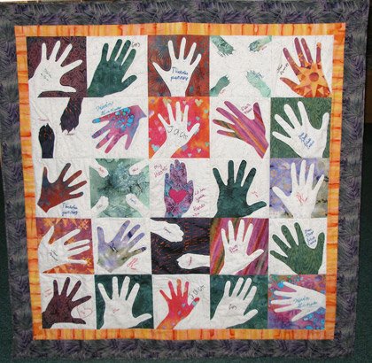 DianaHunt Family Hands (and Paws) - Traced family hands and paws. Used Steam-a-Seam to make two blocks, a positive and a negative. This is a great project for a group.