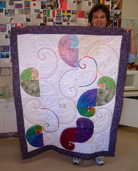 | Design Source - Description | Members of a group made the blocks after a Math and Quilt lesson by me! The Fibonacci series 1, 1, 2, 3, 5, 8, was used to cut the squares to sew together. |