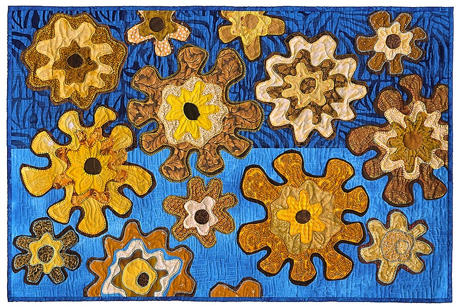 melodycrust Uptown - Usually I have more ideas than I can put into action. I try to do things ‘I like” to do. I enjoy the challenge of working with color, lots of color. A trip to a local museum inspired this color scheme of brown, blue and gold. I like anything I can do by machine.