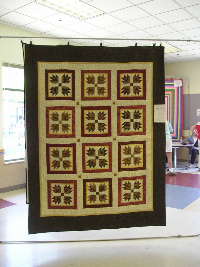 | Design Source - Description | Fussy cut te Moda fabric to make this bear paw quilt for our family room. I love scrappy quilts, so used a variety of prints to complete the top. Back is flannel. |