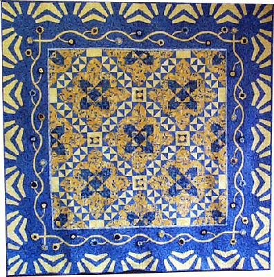 | Design Source - Description | The center is broken dishes. There are ruched flowers in the center and around the appliqued vines. The border came from EQ5. |
