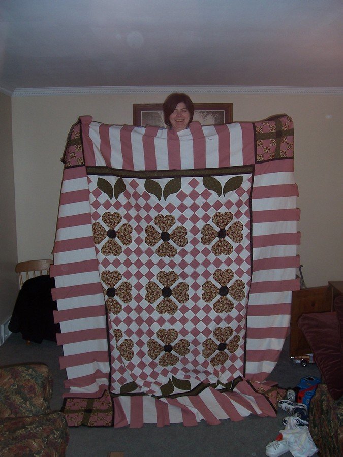 zegiquiltbug Black-eyed Susan - I made this quilt to commemorate my daughter's move from a crib to a big-girl bed. It was supposed to be done for her second birthday. She'll be three in June! Machine pieced (not so accurately because of the deadline) and hand quilted with a flannel back. It isn't yet bound but should be by the third birthday :)
