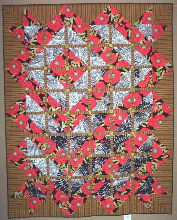 BrendaF Black, White, and Red Poppies All Over - Designed this quilt in Electric Quilt based on the large scale floral pattern. It was all about featuring the fabric! I like playing with the borders to extend the quilt top, it seems to add dimension.