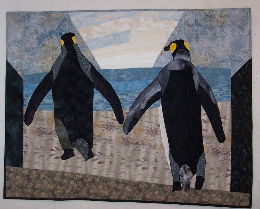 | Design Source - Description | Just to show you that I do not always do quilts showing pain, I thought I would add this penquin one - again done for my color theory class - illumination. Now hanging in my living room - love this one. |