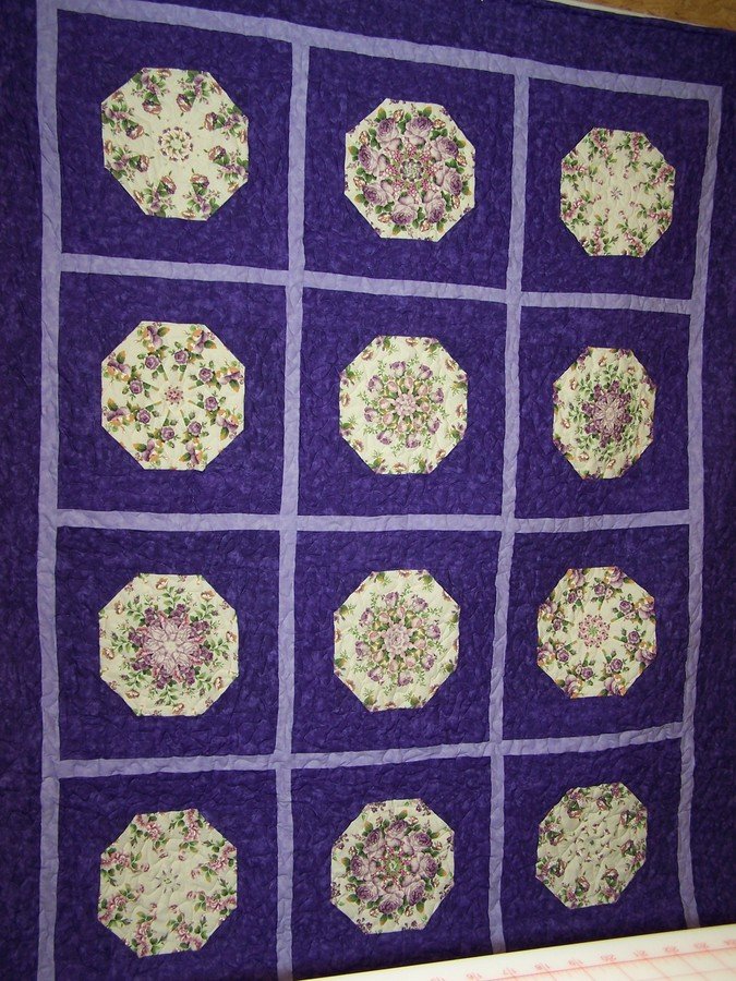 patchworkangel purple roses - the block centers are fussy cut kalidescope style
