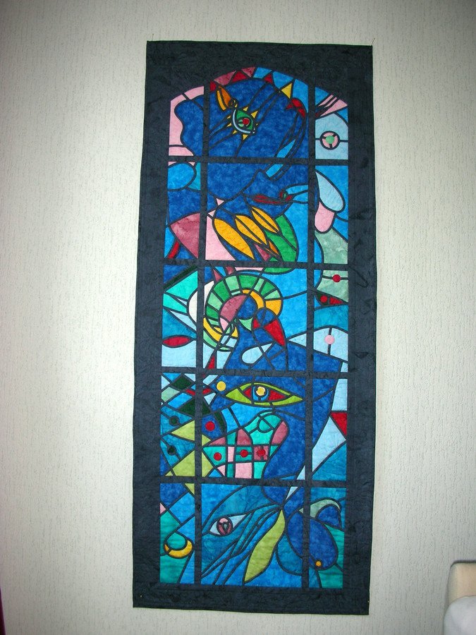 | Design Source - Description | Visited the church in Ribbe, Denmark during my bicycle travels along the Northsea coast and decided that that window would be my next quilt. |