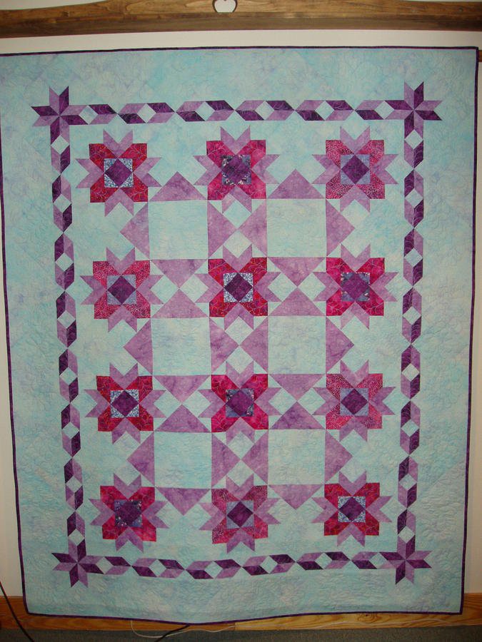 patkerko Lucious Lavendar - I think everyones favorite colors is Purple. I enjoyed putting this quilt together and the richness of the color. Additionally, I enjoyed exploring and improving my machine quilting skills. I quilted this on my home machine. This quilt just won First Place in the machine quilting category at the 2007 Pigeon Forge Quiltfest. Needless to say I was very excited.