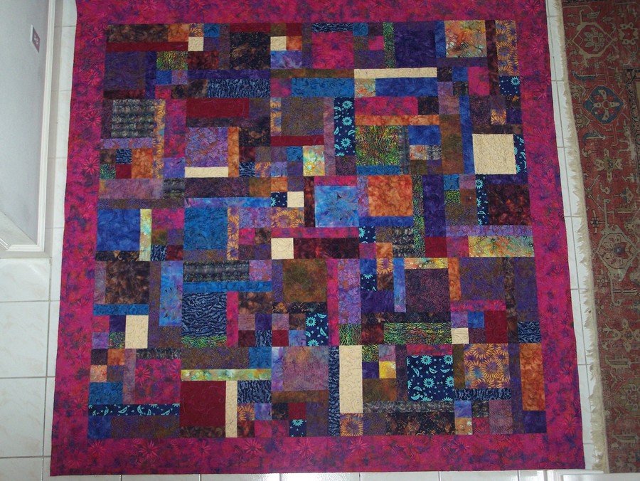 crzywymyn Mystique Batik - I love these "Turning" patterns for batiks--they let the pattern of the batik show, yet can appear more complicated than it really was to create. This was in the Quilter's Guild of Dallas Quilt Show, March 2007. Given to Michelle as a college graduation gift.