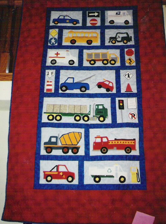 Stitcher Cars and Trucks for Alex - Made for Alex when he was two and loved all moving vehicles. Customized to fit family members