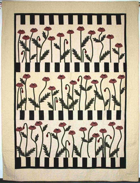 | Design Source - Description | Simple yet striking, this folk-art style quilt features rows of appliqued poppies separated by walking lanes of pieced strips. |