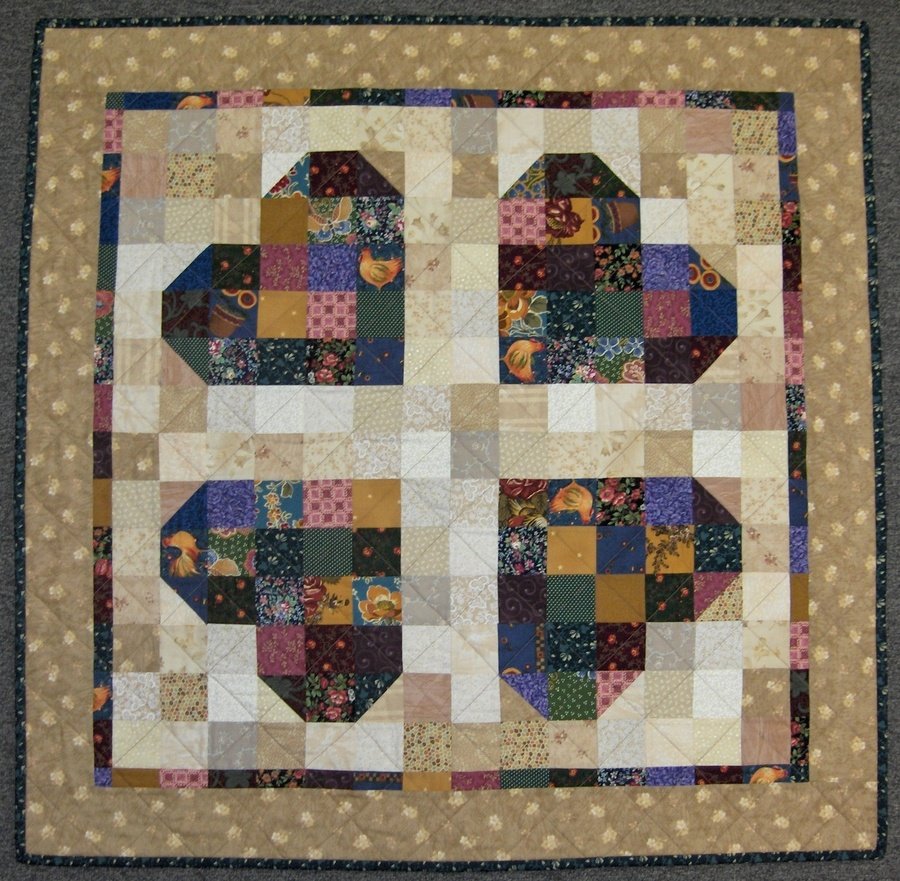 kayahr 4 Hearts - The heart block was part of the local guild's 2006 block collection. My first block was too big --- aaagggrrrhhh, those quarter-inch seams! My second block fit the specifications for the block collection. So what to do with the block that was too big!?! Make 3 more!