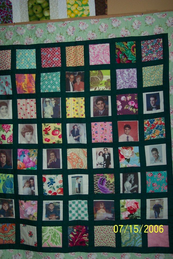 | Design Source - Description | this quilt was made for my mother's 85th birthday. all the 'monkeys' (family members) are in place. they are in order of birth, order of weddings and order of birth of grand annd great grandchildren. |