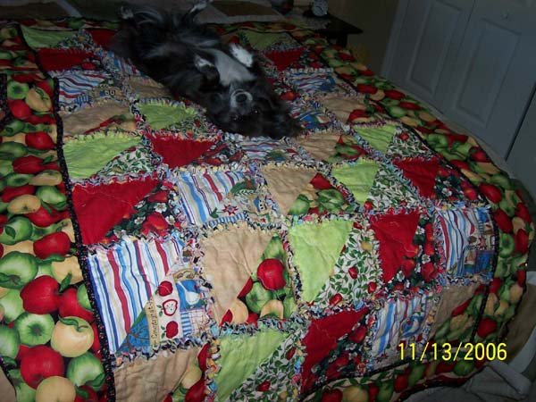 chefmansfield Apples - Block Rag Quilt made of all apple materials and compliminiting materials. Made some triangles just because I wanted some spunk put in it. Given to my cousin for a friend,,, only knew to make an apple quilt. Lady did not use it on bed but hung it on the wall .