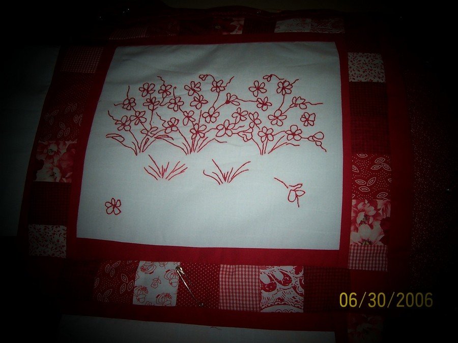 chefmansfield Red Work Quilt for Catey - Worked on this red work quilt for three years. It is all hand embroidered. Something special for my granddaughter for her wedding someday. (NO HURRY) Did a stitch around the flower once to highlight the flower. Just one of the blocks for now.