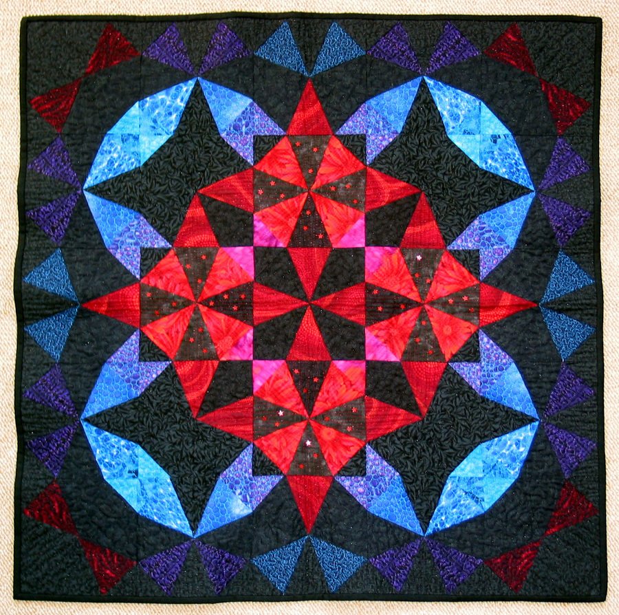 | Design Source - Description | A traditional kaleidoscope block with less than traditional colour placement, and a few sequins for added glitz. |