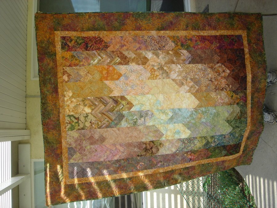 | Design Source - Description | Prairie Braid using batiks. Quilted on my Nolting longarm using stencils I made using computer clip art. |