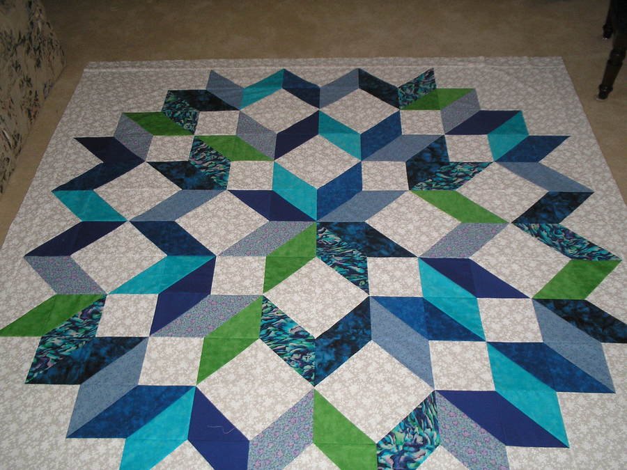 hobbit13 Broken Star - This pattern is in a book by Debbie Maddy. I took a class with it because it said no "Y" seams, and it was fun to do. It is just the top and I still have to put the borders on before I send it to the Quilter.