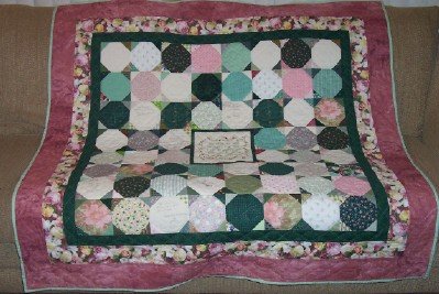 rd2scoot Lois' Quilt - This quilt is for my sister, who has gone through treatments for breast cancer. There are signatures by family members, and the center sq. is embroidered from Peggy Waltman's pattern "Thank You Lord". ("The peace you send me makes it all okay. I can do anything with your arms around me. Thank you Lord. Amen")