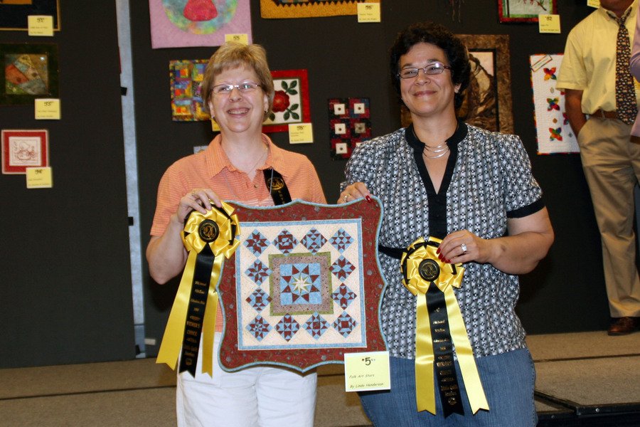 lindahenderson Folk Art Stars - This miniature quilt started as a Buck A Block project from my local quilt shop. Each block was to measure 10" square, however, I adapted them to measure 2" square. I then set them in a medallion-style setting. Won Viewer's Choice at NQA Little Quilt Auction; purchased by Karen O'Connor of Red Rooster Quilt Shop in Columbus, Oh in 2008.