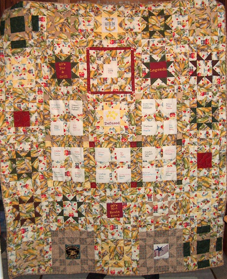 | Design Source - Description | This was made for a good friend fighting Cancer for the 2nd time. Other friends donated machine ahd had stitched squares. The theme was a running joke long before its creation. |