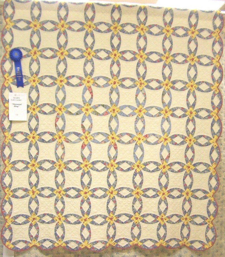 MaryKS Diamond Ring - I hand pieced this quilt in seven weeks in 2006 as part of a challenge on an online quilting forum. My friend, Elaine Huntsinger, did the marvelous hand quilting. It is the only quilt that I have not completed myself. I gave it to my husband on our 20th wedding anniversary.