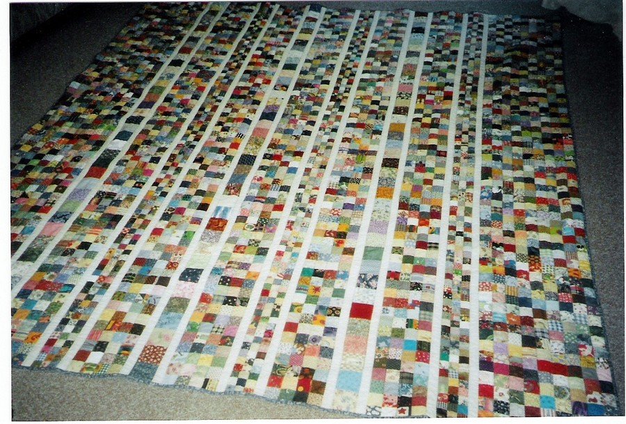 MaryKS My Quilt of Many Colors - This quilt contains over 3,500 different fabrics with no repeats. It is composed of 1 1/2", 2" and 2 1/2" squares.