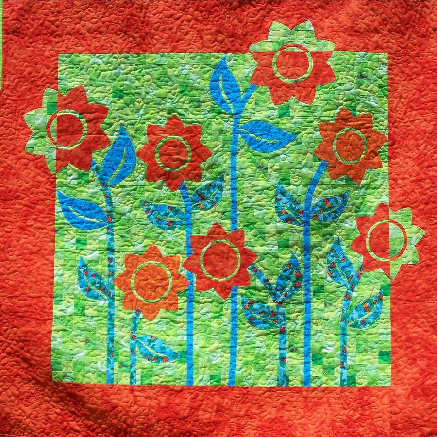 Raggede Ladybug Garden - I fell in love with this quilt pattern at first sight. The ladybugs on the leaves inspired the orange flowers...and the search was on for lime green in 6 different patterns! I finished it the day after the fair entries were due..there's always next year!
