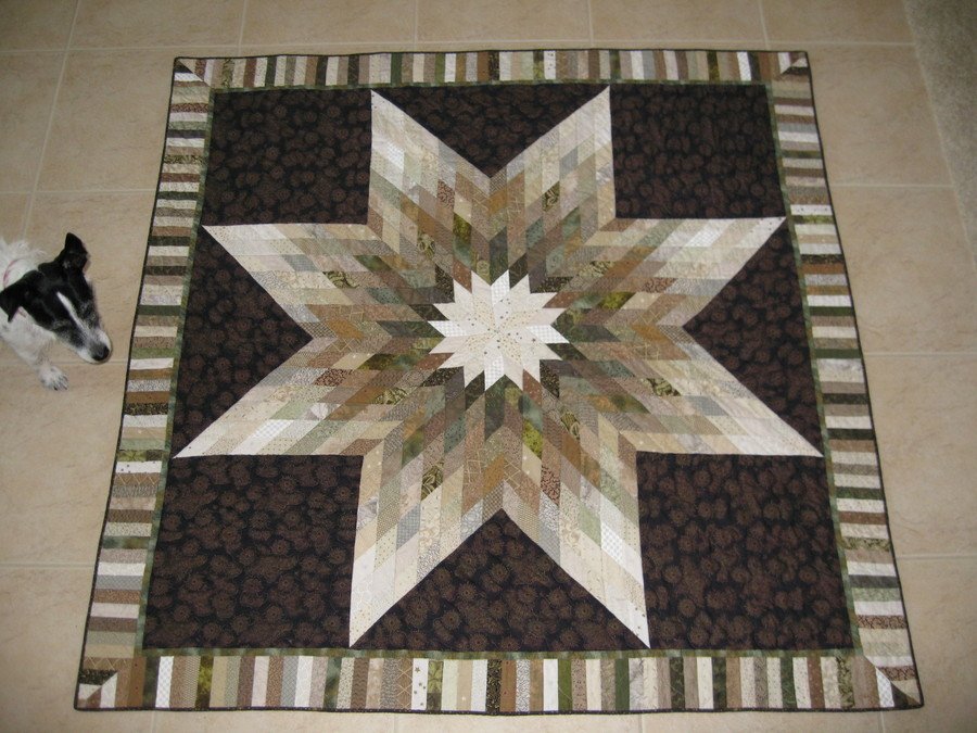 Phazy8 Christopher Lone Star - Christopher is my youngest child and the last to leave the nest. With him went this Lone Star quilt that I made for him several years ago. It was done in a quilt class at the quilt shop where I worked. It has over 88 different fabrics in it and were all purchased in 1/16 yd encrements. At the time, I had no quilt stash and this was a nice start. Christopher is a stellar musician and an excellent performer so I thought the Lone Star with the piano key border suited him well.