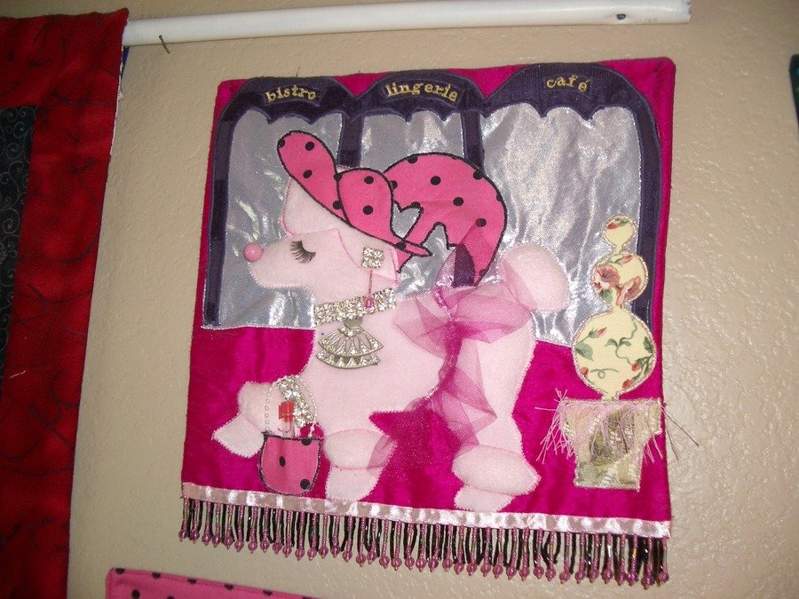 TheSewingQueen Poodle in France - This was a challange for Loomis Quilt Guild, I had so much fun designing this and putting some of my Grandmother's buttons and baubles on the poodle.