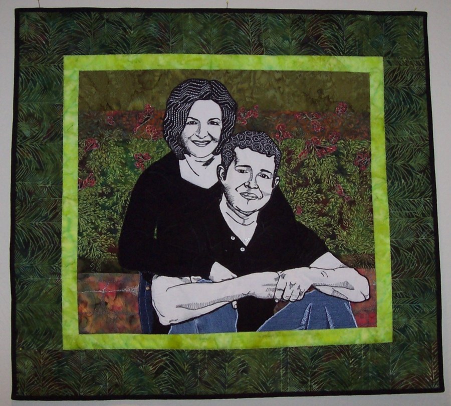Melissa A Portrait of Us - This quilt is a rendition of the technique found in the article called "Stitch a Sketch" by Faye Anderson found in the Quilters Newsletter Magazine. It is a portrait of my husband and I.