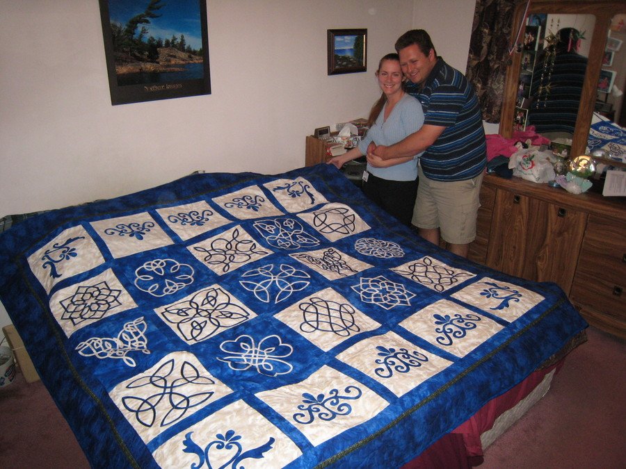 Smithers A Journey Through Life - This quilt was made for my daughter and her fiancee for their wedding which is on June 16, 2007. It took me 1 1/2 years to make as I had to research the celtice designs first and design a layout for the quilt.