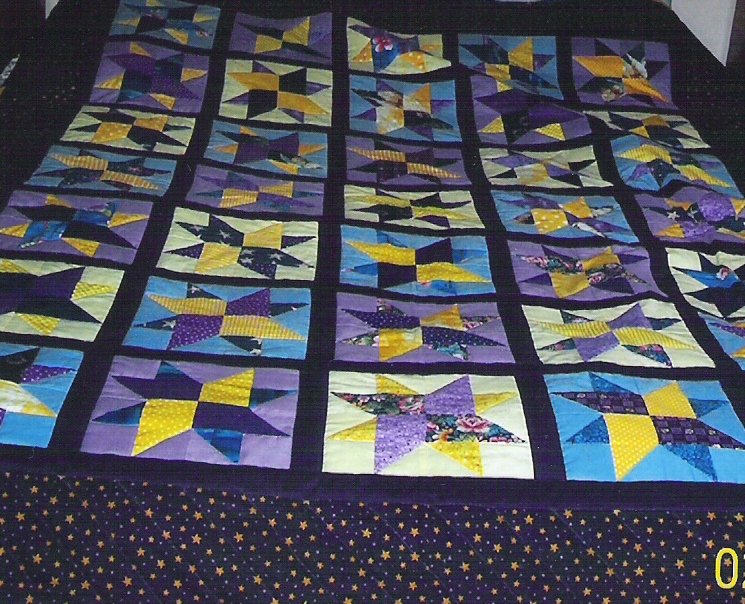 quilting101 Starry Starry Night - Made this quilt for my nieces 18th birthday. the original design was in warm colours but I wanted to reflect a night sky so changed colours to cool.