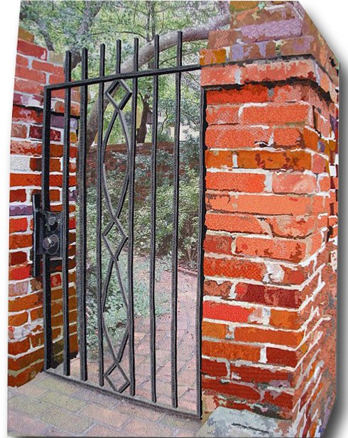 igobroke Secluded Splendor - A photograph I took is the background of this piece. The remainder is appliqué. Small pieces detail how lights and shadows play on the brick and gate.