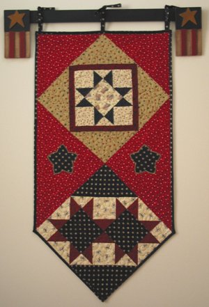 quilter221k Celebrate Freedom - This pattern was featured in Sewing Savvy's July 2007 issue. Red, White and Blue becomes a celebrated wallhanging for your home! Great to display for year round viewing with the Americana look and feel. The wallhanging is designed like a banner, it hangs from a painted flag design.