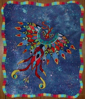 michelleV Bird of a thousand colors - This quilt is made for the myth The Ku Bird, a myth about a bird that had no feathers and the forest each gave him a feather and he then became the bird of a thousand colors. I love birds and couldnt resist making a quilt to go with this old story.