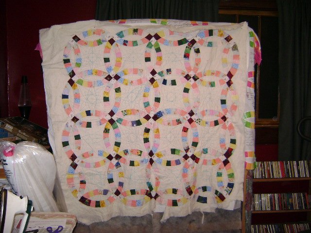 mandysilk Interlocking memory - wip but getting closer... - This quilt, which is still a work in progress but almost done now, was made from scraps left over from everything from halloween costumes to christmas gifts. Every fabric is a memory. It even has bits from clothes I made each of my children as babies. It is a practice quilt and was my first attempt at a DWR. Hopefully I will have the quilting finished and have it bound soon.