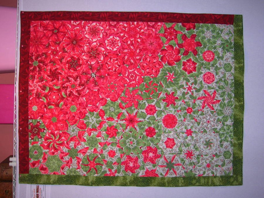 Pattiwatti "Kaleido-Poppies" - I am always buying very large focus fabrics which steer me toward my love of kaleidoscopes. This is a hexagon kaleidoscope made from very large poppy print that was fun and easy to make. All flowers were outline quilted in invisible thread. I loved it so much, I bought the identical fabric in pink! Of course!