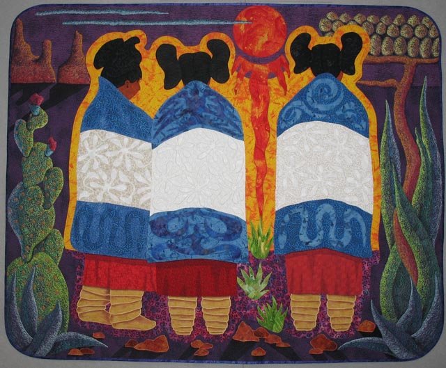 denisehavlan Maidens in Full Bloom - One quilt in my "Native American" series. Cactus are completely machine embroidered. I use the Native American as my subject quite often. The imagery of the Hopi maidens "squashblossem" hairdo is my favorite.