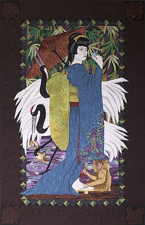 | Design Source - Description | Faces of geisha and monkey are hand-painted. Sleeve and monkey are machine embroidered. This image was well researched to ensure accuracy in all details of the design. |