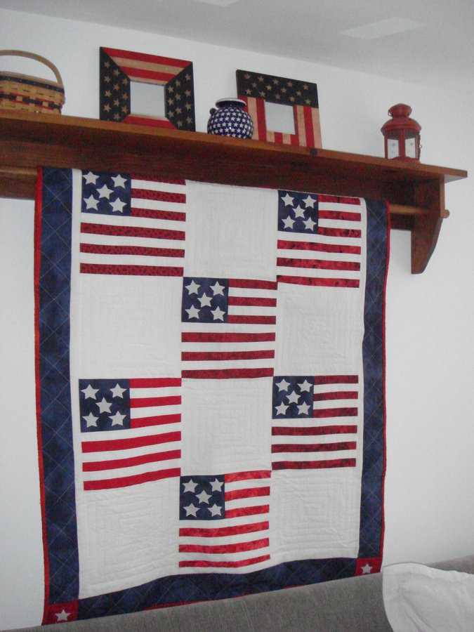 terrimacp Americana Flag Quilt - I saw a bed quilt similar to this pattern in a catalog many years ago. I loved it and decided to make myself a wall quilt based on it. I made one for my mom and grandma while I was at it.