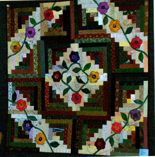 DWilli2359 Barb's Flower Garden - Made for local guild challenge. Requirements: include block made by recently deceased member; make entirely from stash; include image of bumble bee.